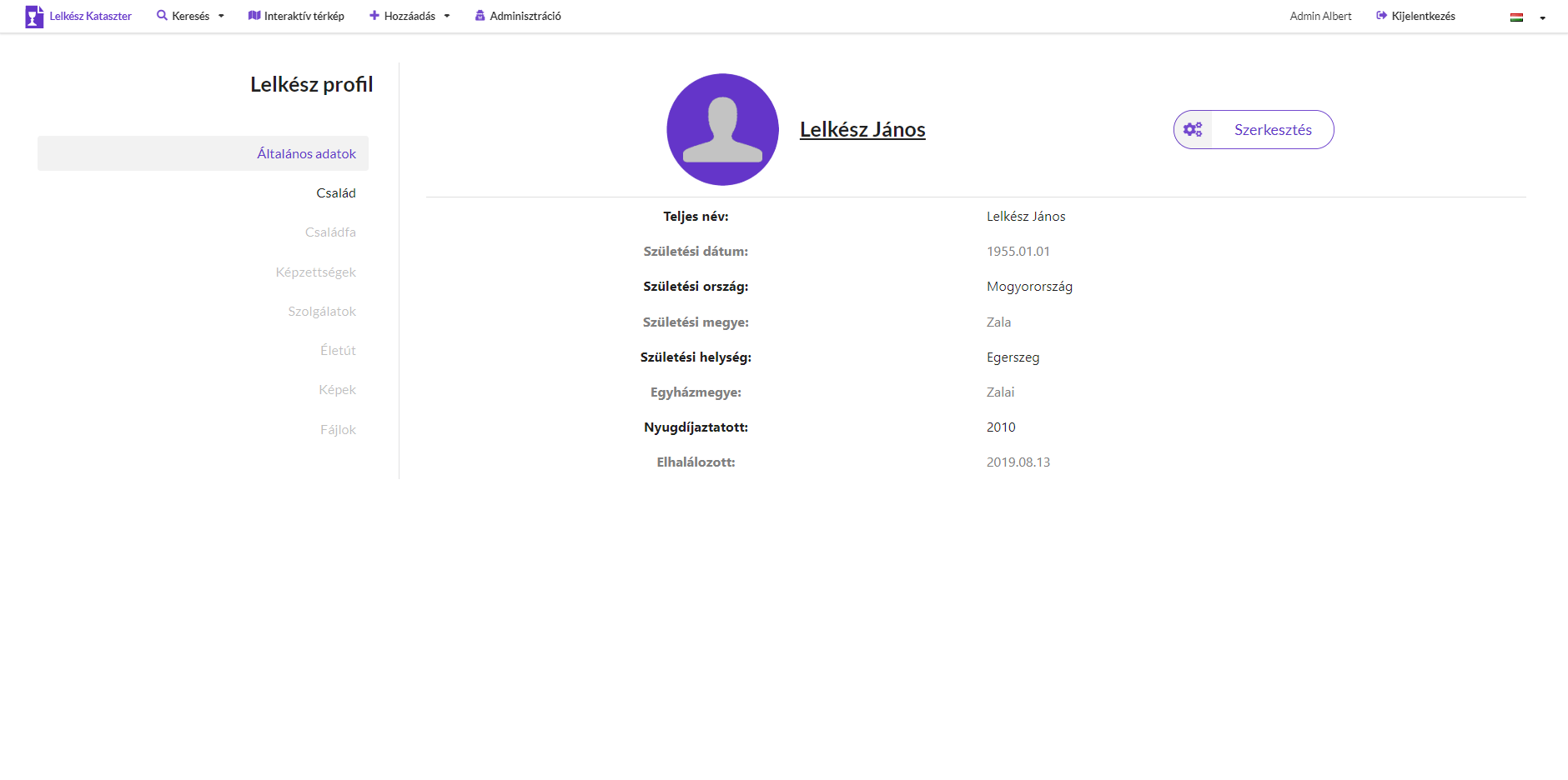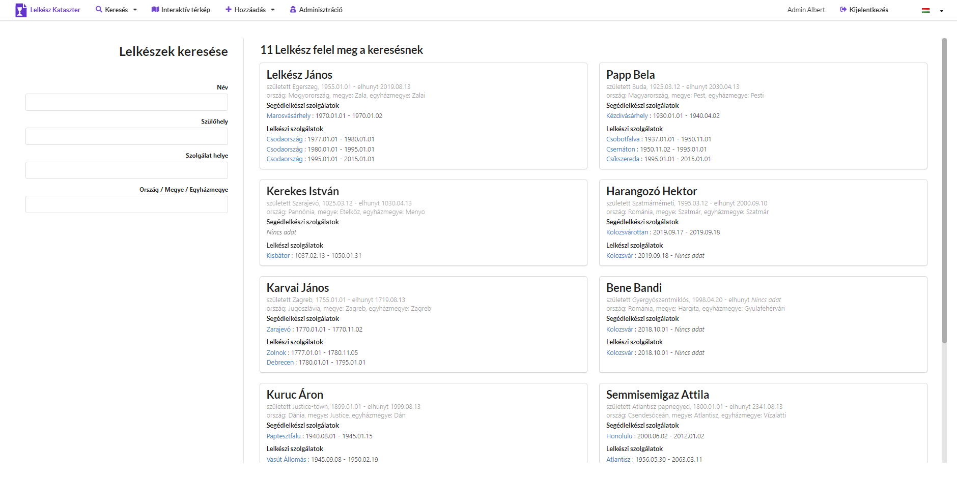 A lelkészek és gyülekezetek adatbázisa